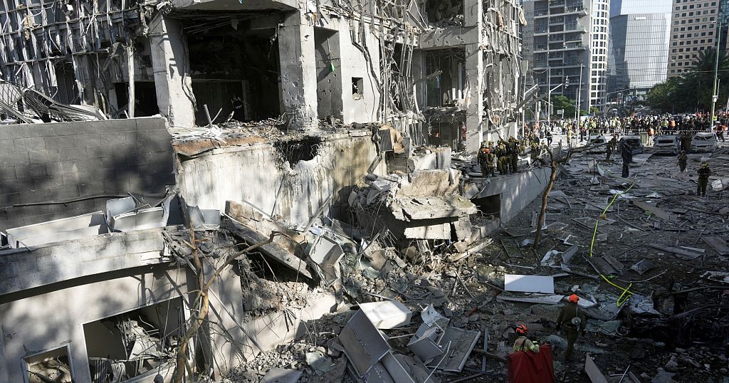 An Iranian missile hit a busy residential and commercial area in at least two sites just outside the Israeli city of Tel Aviv on Thursday, causing extensive damage.