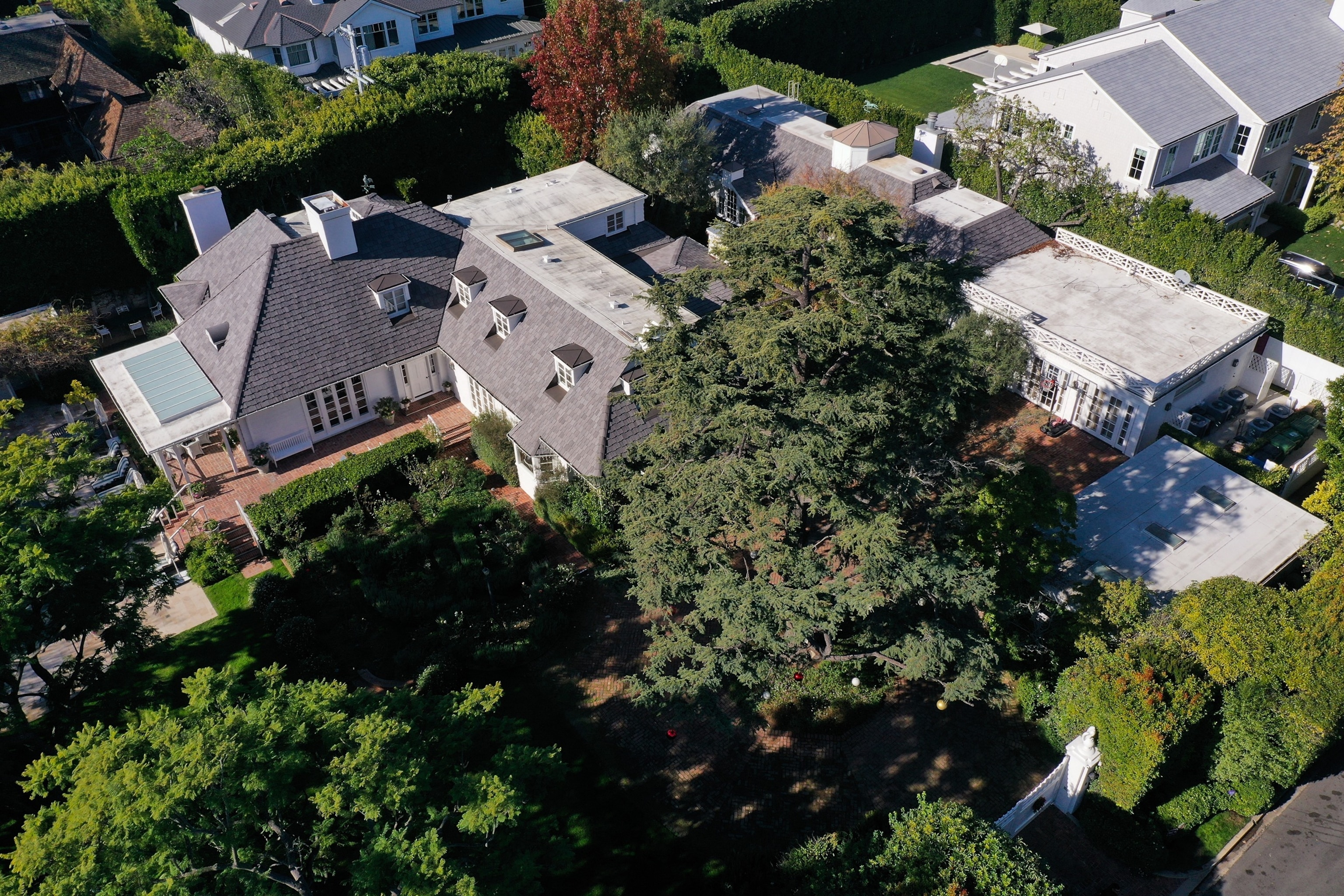 An aerial image shows the home of actor and director Rob Reiner in the Brentwood neighborhood of Los Angeles, California on December 15, 2025.