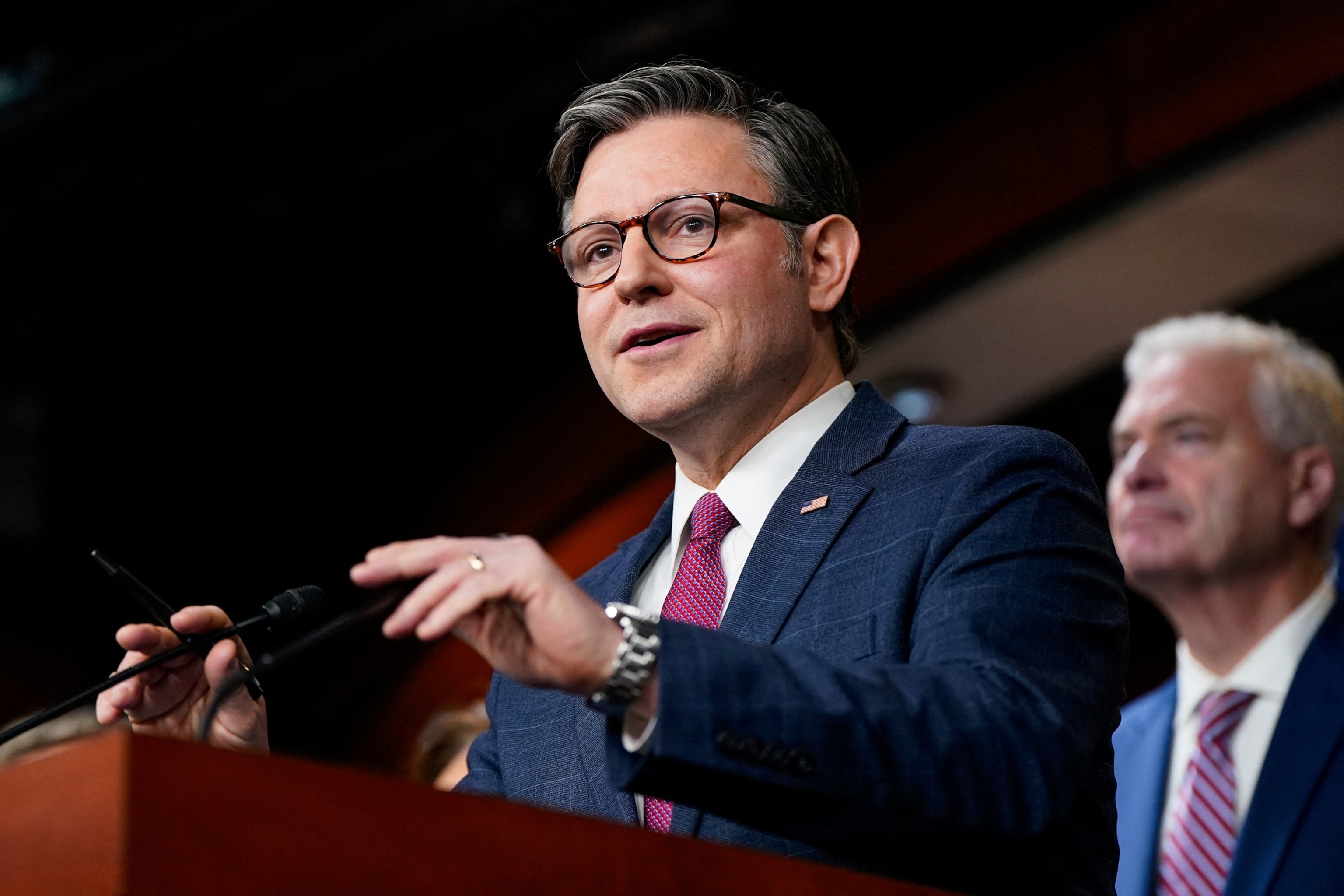 House Speaker Mike Johnson speaks during a press conference on Capitol Hill in Washington, December 10, 2025.